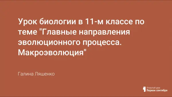 Урок биологии в 11-м классе по теме "Главные направления эволюционного процесса. Макроэволюция"