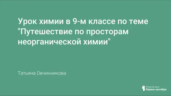 Урок химии в 9-м классе по теме "Путешествие по просторам неорганической химии"
