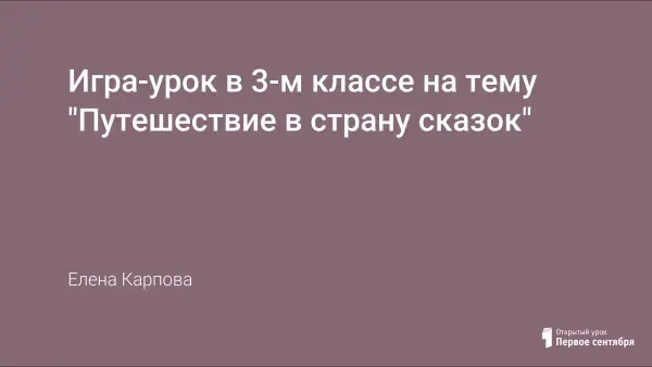 Игра-урок в 3-м классе на тему "Путешествие в страну сказок"
