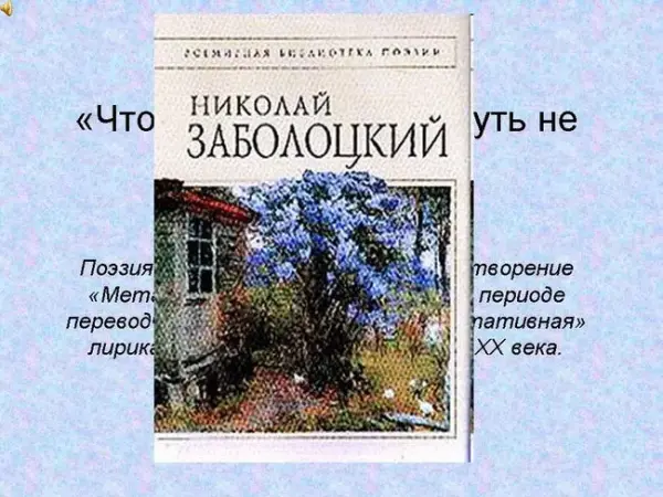 На уроке учащиеся обращаются к творчеству поэта-философа Н.Заболоцкого. Урок является демонстрацией отдельных методических приёмов и способов организации уроков по анализу поэтического текста для учащихся выпускных классов. Урок предлагается для подготовки учащихся к итоговой аттестации как по литературе, так и по русскому языку.