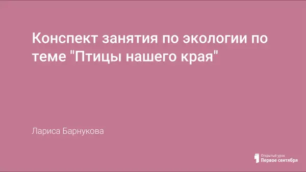Целью данного занятия по экологии является: уточнение и расширение представления детей о птицах нашего края, об особенностях внешнего вида, повадках птиц, приспособленности их к среде обитания. Учить находить признаки сходства и различия.