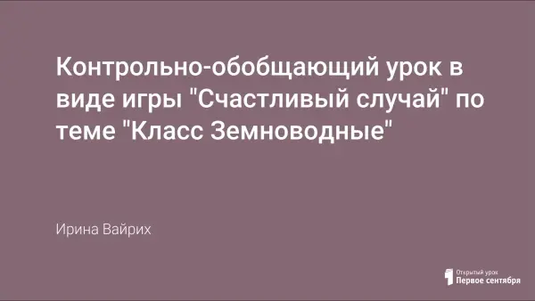Урок по зоологии проводится по принципу телевизионной игры "Счастливый случай". На ней учащиеся должны показать свои знания о земноводных. Игра состоит из четырех геймов, в ней участвуют 2 команды.