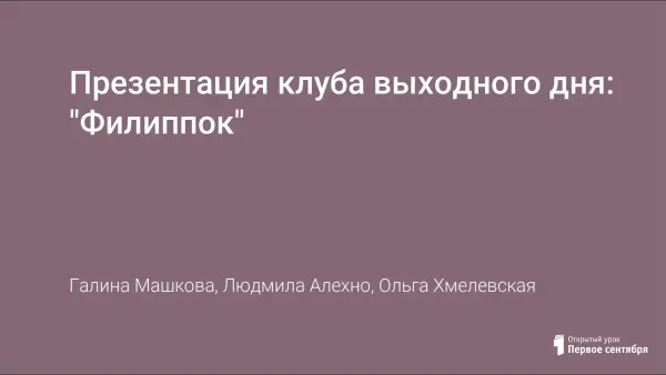 Презентация клуба выходного дня: "Филиппок"