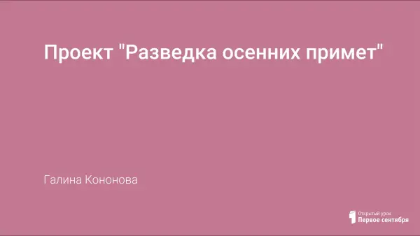 Проект был разработан с целью воспитания экологической грамотности учащихся. Вместе с учащимися сформировали 5 команд разведчиков. При изучении литературы и на экскурсиях работали строго по своему заданию, набирая материал для отчёта. Создали книгу осени: рассказы, загадки, приметы, советы. Провели «Праздник осени и отметили самых активных участников проекта.
