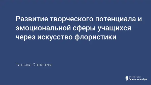 Занятия с учащимися на уроке технологии и кружках по курсу флористического искусства несут здоровьесберегающие технологии, экологическое воспитание, эстетическое воспитание, духовно-нравственное воспитание; способствуют развитию творческого потенциала, гармонии личности. Всё это вместе даёт возможность самовыражения, самоутверждения; решаются психологические проблемы становления личности и профессионального самоопределения.
