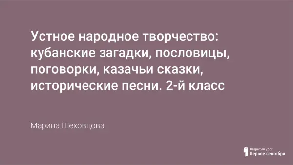 На уроке кубановедения учащиеся закрепляют полученные знания об устном народном творчестве кубанцев. Этот урок призван закрепить и расширить полученные знания по данной теме. Формировать умение различать малые жанры устного народного творчества, расширять представления о культуре и истории родного края, прививать чувство гордости за свою малую родину. Учащиеся выполняют различные виды заданий в игровой форме.