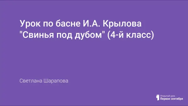 Урок по басне И.А.Крылова «Свинья под дубом» составляла очень долго. Рассмотреть и понять смысл басен помогли история – биография самого жанра – басни и биографии баснописцев. Считаю, что с этими биографиями обязательно нужно знакомить младшего школьника. Они открывают сущность басен. Помогают понять «тело» басни – текст и раскрыть «душу» басни – мораль.