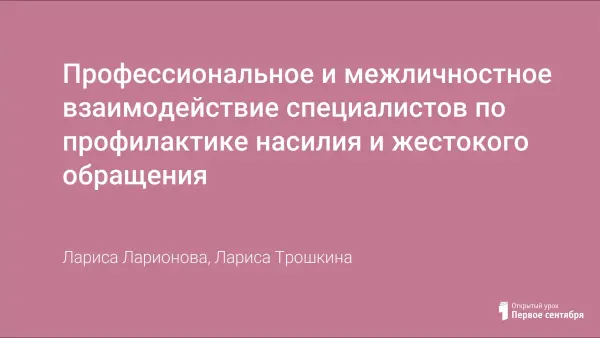 Профессиональное и межличностное взаимодействие специалистов по профилактике насилия и жестокого обращения