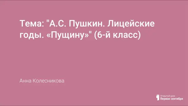 Урок изучения нового материала. Цели урока: заинтересовать учеников рассказом о лицейских годах поэта; организовать самостоятельную работу учащихся; работать над выразительным чтением, рассмотреть стихотворение «Пущину».