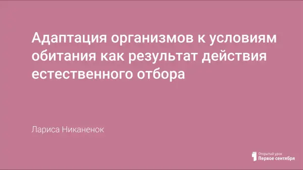 Урок изучения нового материала с использованием презентации и лабораторной работы. Формирует у учащихся понятие о приспособленности организмов к среде обитания, а в ходе лабораторной работы они выявляют механизмы приспособления в результате действия естественного отбора. Урок способствует развитию интереса, как к самой биологии, так и к информационным технологиям, применяемым в течение урока.