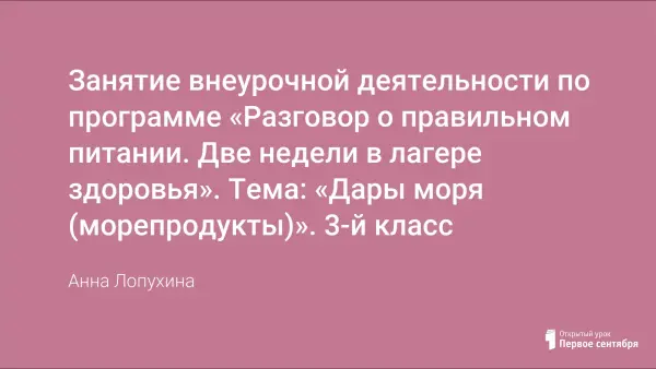Цели урока: расширить представление детей о морских съедобных растениях и животных, многообразии блюд, которые могут быть из них приготовлены; сформировать представление о пользе морепродуктов, необходимости микроэлементов для организма.