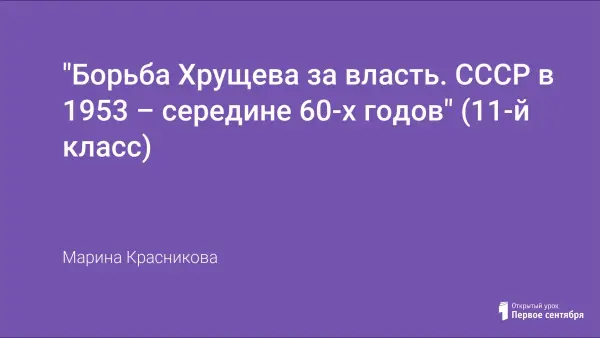 Цель урока: показать исторические предпосылки политических перемен в стране, альтернативы развития СССР после смерти И.В. Сталина, борьбу за власть между партийными и государственными лидерами, роль Н.С. Хрущева в демократизации политической системы.