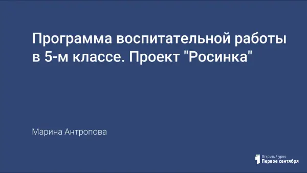 В проект включена Программа воспитательной работы, план работы классного руководителя и примерный план работы на год.