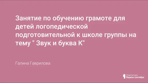 В статье представлено занятие по обучению грамоте дошкольников логопедической подготовительной к школе группы на тему: «Звук и буква К».