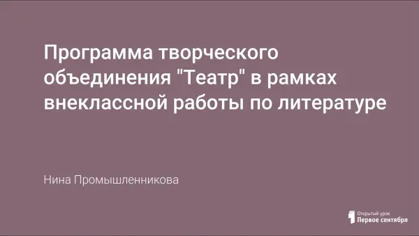 Программа творческого объединения "Театр" в рамках внеклассной работы по литературе