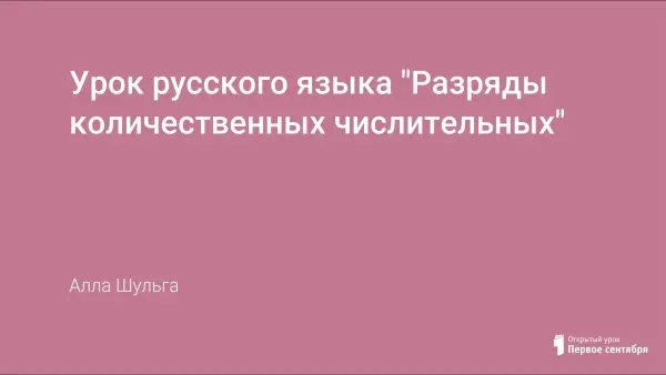 Цель: ознакомление с разрядами количественных числительных. Задачи: развитие умения распознавать разряды количественных числительных целых, дробных, собирательных); выработка умения изменять их, организация деятельности учащихся по применению имеющихся знаний.