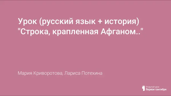 Урок основан на работе с письмами выпускника-афганца Мелешина В.Н., погибшего при выполнении воинского долга в Афганистане. Ход афганской войны рассматривается через судьбы её отдельных участников – выпускников школы. На уроке идет словарная работа, работа в группах, подготовка к сжатому изложению.