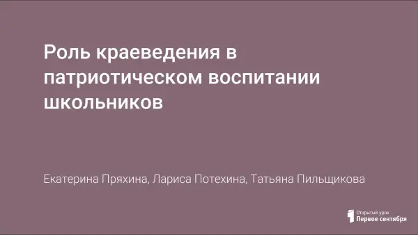 В статье раскрываются формы реализации краеведческой работы: через школьный музей как центр патриотического воспитания, учебные предметы и элективные курсы, через внеклассную и внешкольную деятельность, посредством участия в Интернет-проектах, конкурсах. Статья сопровождается презентацией