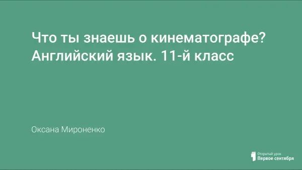 Урок английского языка в 11-м классе. Цели урока: закрепление и контроль изученного материала по теме «Кинематограф»; отработка и проверка лексических и грамматических навыков чтения и говорения; развитие навыков индивидуальной работы и работы в парах.