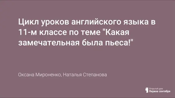 Цикл уроков английского языка в 11-м классе по теме "Какая замечательная была пьеса!"