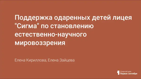 Поддержка одаренных детей лицея "Сигма" по становлению естественно-научного мировоззрения