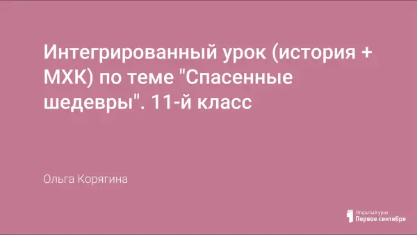 Урок знакомит учащихся с историей создания Дрезденской картинной галереи, с историей поисков и спасением Советской армией шедевров картинной галереи. Сражаясь за города европейских стран, наши солдаты сражались за культуру этих народов, за ее спасение. Восставшие из пепла города, сохраненные для будущих поколений музеи стоят ныне как памятники нашей Победы. Для проведения данного урока учащимся дается задание подготовить сообщение о шедеврах Дрезденской галереи и о спасении картин в 1945 году.