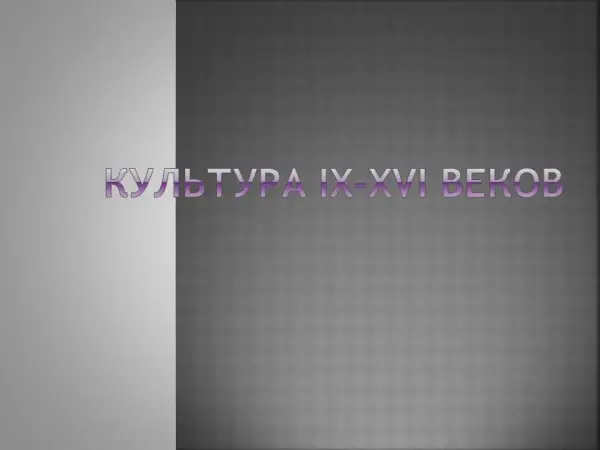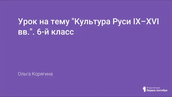 Цели урока: охарактеризовать развитие культуры в IX–XI вв., определить факторы, повлиявшие на её развитие; рассмотреть особенности культуры русских княжеств, определить влияние монголо-татарского нашествия и ордынского владычества на русскую культуру. (XII–ХIII вв.); познакомить учащихся с развитием культуры XIV–XVI вв., выделить её особенности и определить влияние политических процессов, происходивших в России; знакомство учащихся с выдающимися достижениями культуры.