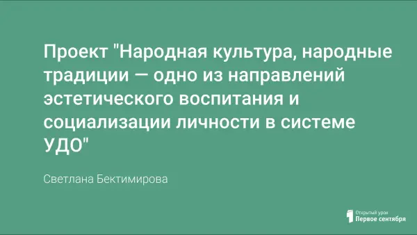 Народная культура и народная педагогика являются широким полем деятельности для педагогов, на основе которого возможно создать ряд проектов с высокой итоговой результативностью и высоким уровнем качества обучения, воспитания и социализации личности, соответствующих современным требованиям образования.