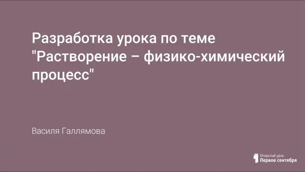 Целью урока является формирование понятия о сущности процесса растворения, как физико-химического явления. Усвоение материала происходит в процессе собственной интеллектуальной деятельности учащихся. На уроке школьники знакомятся с историей теории растворов, с донорно-акцепторным механизмом образования ковалентной связи, совершенствуют экспериментальные умения.