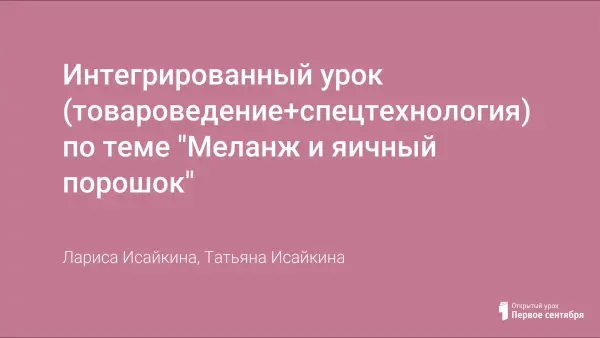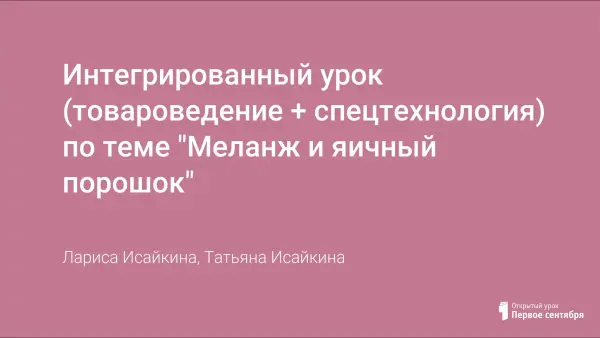Интегрированный урок (товароведение + спецтехнология) по теме "Меланж и яичный порошок"