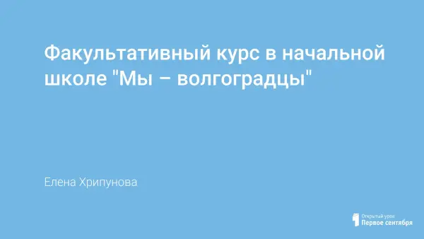 Программа факультативного курса составлена для работы с младшими школьниками и направлена на социокультурную адаптацию, на подготовку к гражданской и нравственной деятельности. Курс призван обогатить знаниями об историческом прошлом города Волгограда, культурных традициях прошлого и настоящего, воспитывать школьников на примерах мужества, героизма и мудрости волгоградцев, развивать интеллектуальные и творческие способности учащихся, воспитывать чувство гражданственности и патриотизма.