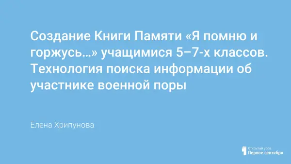 В Книге памяти опубликованы воспоминания тех немногих здравствующих ветеранов, кто еще может встречаться со школьниками, и рассказы бабушек, дедов и прадедов учащихся школы о военных годах. Работа над созданием «Книги памяти» расширяет представления учащихся об основных событиях Великой Отечественной войны за счет обращения к документам семейных архивов и непосредственным носителям исторической памяти (родителям, бабушкам, дедушкам и другим).