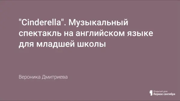 Представлен сценарий музыкального спектакля на английском языке “Cinderella” для учащихся 3–4-х классов. Зажигательные песни и несложный текст сценария непременно увлекут детей, а подробные рекомендации дадут учителю возможность подготовить спектакль к постановке быстро и без особых усилий.