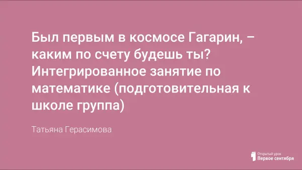 Занятие воспитывает у детей эмоциональное доброжелательное отношение к окружающему миру, себе, сверстникам и взрослым. Развивает чувство гордости и патриотизма за героев своей страны. Знакомит с биографией первого космонавта Юрия Гагарина. Воспитывается интерес к математике. Ребята отрабатывают состав числа 5. Образовательный процесс проводится с детьми старшей группы (5–6 лет).