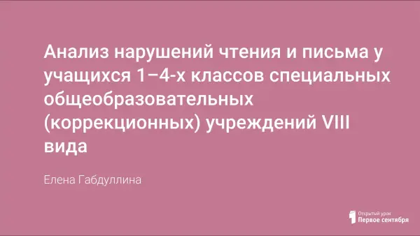 Нарушение деятельности различных анализаторов и расстройства психических процессов у умственно отсталых детей приводит к неполноценности психофизиологической базы формирования письменной речи. Поэтому из всего многообразия речевых нарушений у учащихся специальных (коррекционных) школ выделяются нарушения чтения и письма.