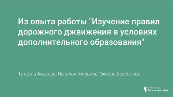 Из опыта работы "Изучение правил дорожного джвижения в условиях дополнительного образования"