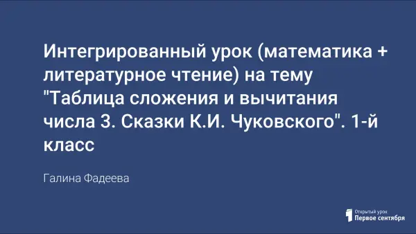 Интегрированный урок дает возможность в игровой форме закрепить табличные случаи сложения и вычитания числа 3, формировать умение решать простые задачи, закрепить понятия "авторская сказка" и "народная сказка", выявить читательский опыт детей – знание сказок К.Чуковского.