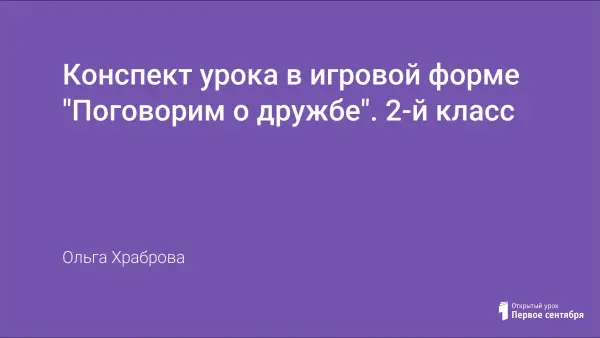 Урок проходит в игровой форме. Проводится совместная работа учащихся, которая воспитывает культуру общения, учит прислушиваться к мнению товарищей, поддерживает двигательную активность. Цель урока – формирование нравственных качеств: умения дружить, беречь дружбу; воспитывать чувство доброты, сопереживания.