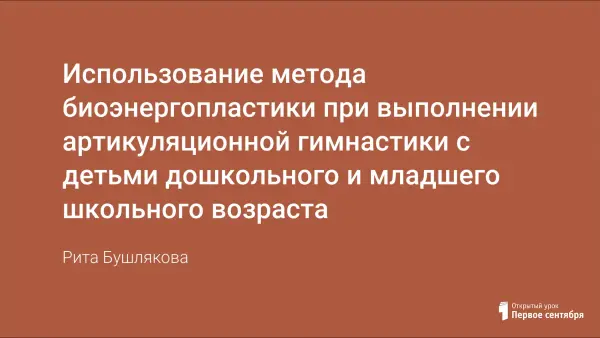 В статье представлен авторский подход к проведению артикуляционной гимнастики с использованием биоэнергопластики, представлено примерное планирование занятий, предложены разработанные автором фото статических артикуляционных упражнений с изображением положения кистей рук.