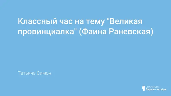 Главная цель классного часа – познакомить обучающихся с жизнью и творчеством Фаины Раневской; приобщение обучающихся к познанию и пониманию творчества Ф.Раневской.