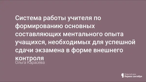 ЕГЭ предъявляет особые требования как к организации интеллекта учащихся, так и к их эмоционально-волевой сфере. В статье описаны основные элементы педагогической технологии, направленной на формирование ментального опыта учащихся (ТОМО). Эта авторская технология является одним из компонентов в системе работы школы по подготовке учащихся к ЕГЭ .