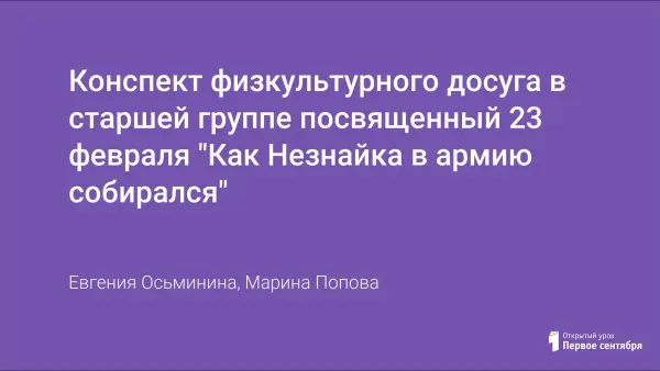 Конспект физкультурного досуга в старшей группе посвященный 23 февраля "Как Незнайка в армию собирался"