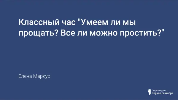 Попытка разобраться в особенностях проявления такой нравственной категории, как прощение, попыткой самоактуализации, то есть желанием найти ответы внутри себя, соприкасаясь со своей совестью. Цель занятия: развивать «умение прощать» и «быть прощенным», понимать значение этих действий.