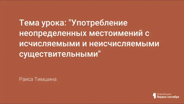 Урок знакомит учащихся с новым грамматическим материалом с исчисляемыми и неисчисляемыми существительными, отрабатывает навык употребления исчисляемых и неисчисляемых существительных в речи и неопределенных местоимений с ними.