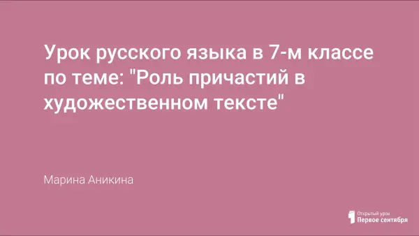 Данный урок развития речи целесообразно провести после изучения темы «Причастие» в 7-м классе. Результат работы на уроке – создание учащимися собственного речевого произведения (сочинения-миниатюры) с использованием причастий и причастных оборотов.
