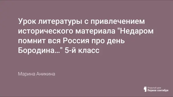 Урок литературы в 5-м классе по теме «Недаром помнит вся Россия про день Бородина…» позволяет учащимся увидеть взаимосвязь литературы и истории, проследить отражение исторического события в художественном произведении и сопоставить стихотворение М.Ю. Лермонтова «Бородино» с историческими источниками.