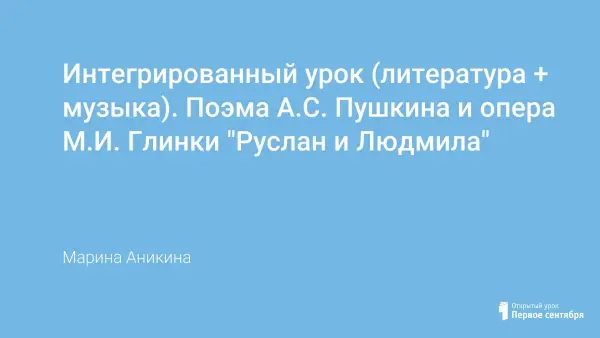 Предлагаемый урок литературы и музыки по поэме А.С.Пушкина и опере М.И. Глинки «Руслан и Людмила» позволяет на примере взаимосвязи двух видов искусства: музыки и литературы - показать, как раскрываются характеры героев произведения через слово и музыкальное звучание.