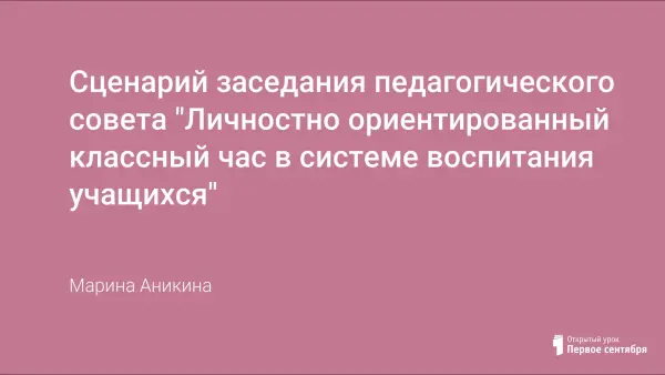 Предлагаемый сценарий позволит неординарно провести заседание педагогического совета. Использование форм групповой работы, «мозгового штурма» сделает обсуждение проблемы организации и проведения личностно ориентированного классного часа интересным для каждого члена педагогического совета.