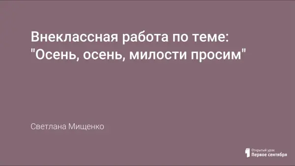 Мероприятие посвящено знакомству детей с приметами осени и традиционными праздниками русского народа, которые праздновались осенью, – Воздвижения, Покрова, Козьмы и Домиана. Урок построен в форме игры, с использованием загадок, прибауток, пословиц, стихотворений, картин и музыкальных произведений на темы осени.