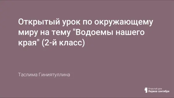 Основной целью урока является повторение и закрепление знаний о водоемах. Урок изучает правило их сохранения и охрану природы. Он направлен на воспитание любви к родному краю и дает представление о водоемах, расположенных в наших краях.
